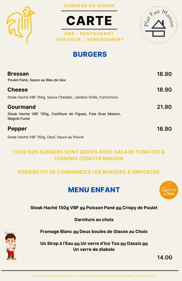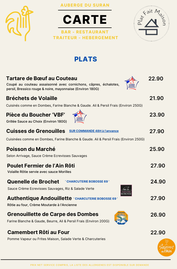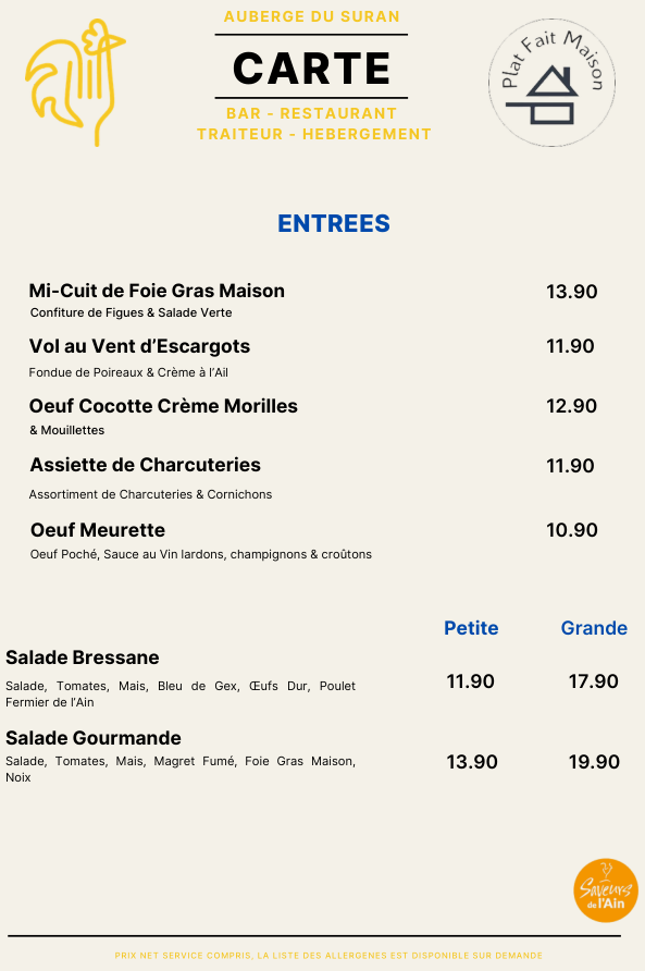 Suivant les arrivages et les envies du chef, la carte peux évoluer